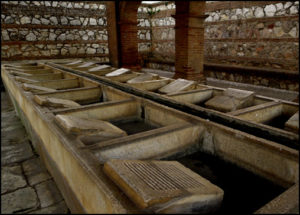 Fed by a continuously flowing underground spring, the ancient community washing basin is a must seen tourist spot in Aracena. It used to be an important site in town where girls and boys ready for marriage used to come to meet and flirt with each other. The basins were used by women until the 70’s. Nowadays, the statues in front of the basins are just a remainder of a former life, long gone.