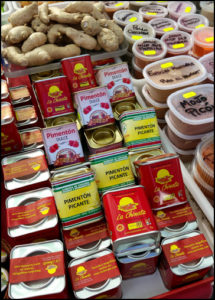 Large variety of Spanish paprika, next to GINGER!!!!!! something I never saw in a village farm market before.