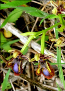Also known as the Mirror Orchid this little plant is very easily overlooked. It is pollinated by a wasp and the striking beautiful blue lip appears to mimic the reflection of the sky on the female wasp’s wings. Brilliant! This way the male wasp, totally in love, gets attracted and “mates” with the smart and beautiful plant.